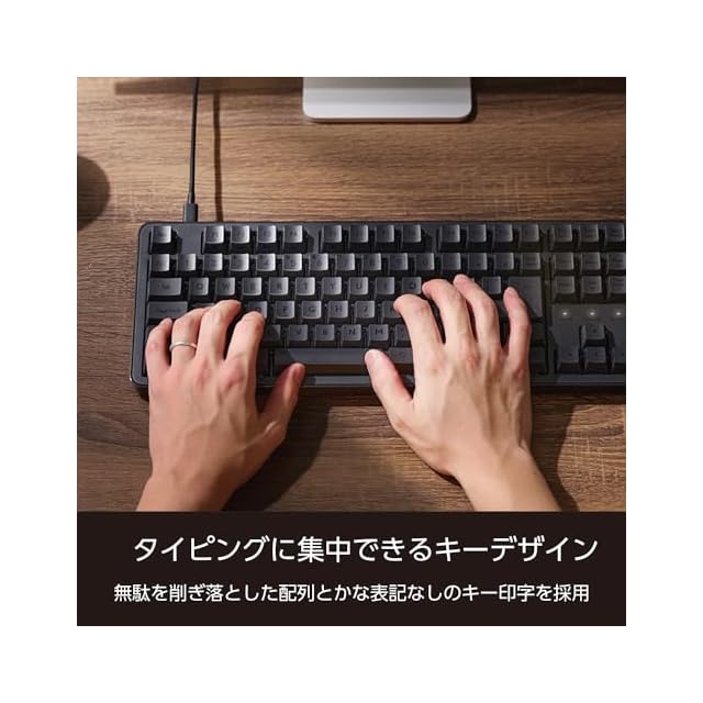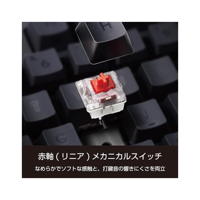 なめらかでソフトな感触と打鍵音の響きにくさを両立した赤軸(リニア)を搭載し、軽やかで心地よいキータッチを実現します。