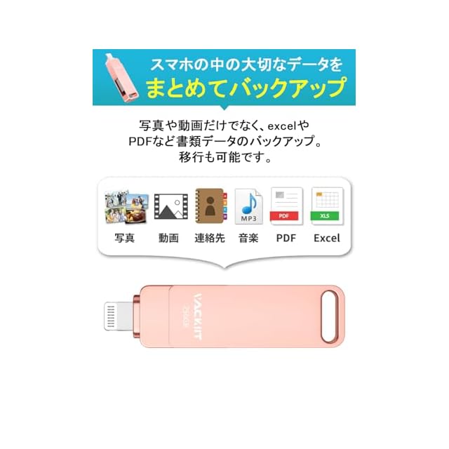 Vackiit「Apple MFi認証取得」iPhone用 usbメモリusb iphone対応 Lightning USB iPhone用 メモリー iPad用 フラッシュドライブ (ピンク, MFI 認証済み 256GB) | TREND DESIGN 家電専門店