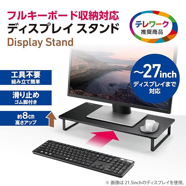 商品名:エレコム モニター台 モニタースタンド ディスプレイ 台 ~27インチディスプレイ フルキーボード収納可能 幅520×奥行260×高さ80mm 耐荷重:10kg ブラック PCA-DPSW528NBK