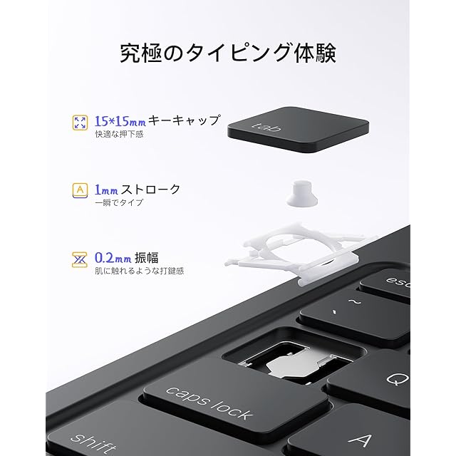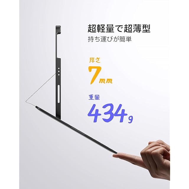 超薄型で超軽量:キーボードの厚さは0.7cmで、カバーで覆われているときが1.5cmです。全体の重量は434gで、類似製品の90%より軽量。より便利に持ち歩くための軽量設計です