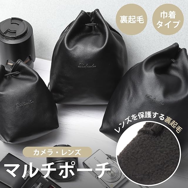 [FUPUONE] カメラケース カメラバッグ レンズケース 軽量 巾着型 ミニサイズ 裏地 フリース<br><br><br>カッコ良く上質感漂うPU加工されたレンズケース。出し入れしやすい巾着型で大人カジュアルに合わせやすく、普段使いもばっちりなショルダーバッグ。Sサイズでも小型ミラーレスカメラがすっぽり入ります。<br><br>底面はしっかりと広く自立するので中身の出し入れが楽々。内側は厚みのあるフリース素材で大切なカメラやレンズをしっかり守ります。オープンポケットもあるのでSDカードの予備やバッテリー等もセットで持ち運べて便利です。<br><br>ご近所撮影から本科的な望遠撮影まで幅広く対応できるスリーサイズ。雨や汚れに強く丈夫なPU加工製なので、ハードな現場にも身軽に持ち運べます。丈夫で長く使える相棒としてご愛用頂けるアイテムです。<br><br>魅力あふれる2カラー。クールでダンディーなブラックも、優しくスタイリッシュなチョコレートブラウンも上品な光沢がありファッションに合わせやすく年齢や性別を選びません。高級感があるので大切な方への贈り物にもお勧めです。<br><br>【素材】PU+フリース【カラー】ブラック、ブラウン【サイズ】S : 幅10㎝ マチ幅10㎝ 高さ17㎝ M : 幅15㎝ マチ幅10㎝ 高さ20㎝ L : 幅17㎝ マチ幅12㎝ 高さ23㎝