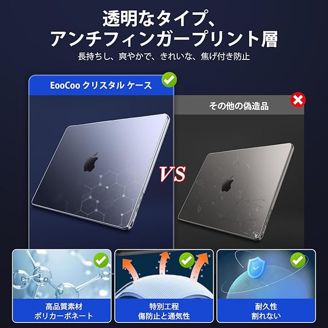 商品名:EooCoo 2025 M4 ケース MacBook Air 13インチ M3 M2 チップ 2024 2022リリース 対応高い透明 傷防止 A3240 A3113 A2681 カバー - クリスタルクリア