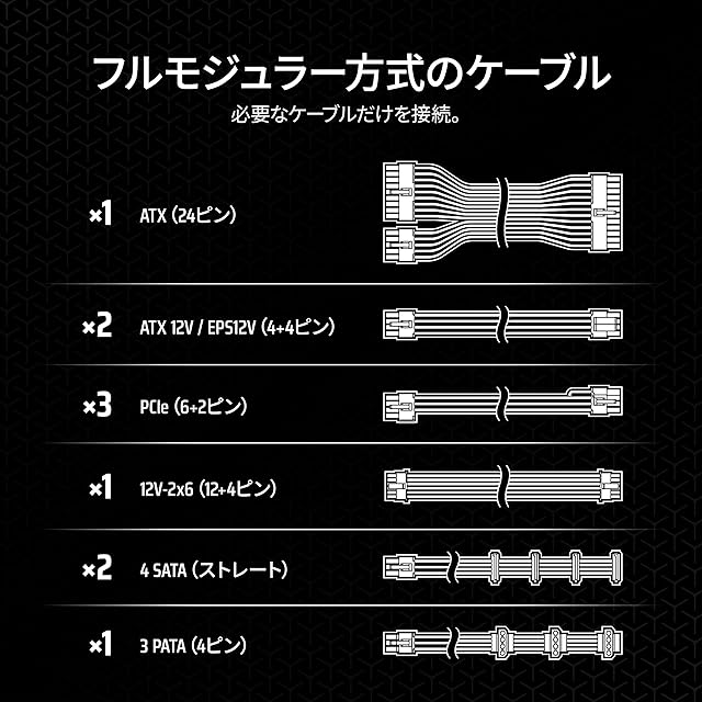 全てのケーブルが着脱可能なフルモジュラー式のATX電源ユニットです。