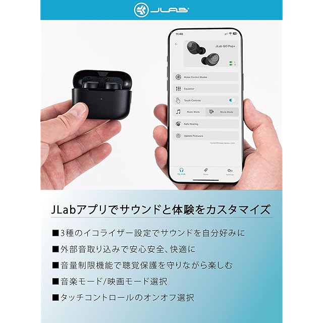 ✅サウンドをカスタマイズ JLab アプリをダウンロードして、リスニング体験をさらにカスタマイズしましょう。タッチ機能をコントロールし、Be Aware 設定を調整し、JLab Signature、Balanced、Bass Boost などの EQ プリセットでサウンド設定をカスタマイズできます。