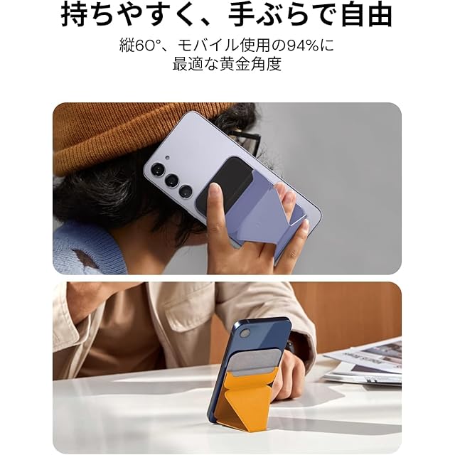 【独自開発・たった1秒でセットアップ】 人間工学によると、最もスマホが見やすい角度は60度だといわれています。MOFT Xはサッと1秒で、瞬時にスマホを60度に固定し、快適な姿勢でお使い頂けます。MOFT Xなら縦から横への切り替えも楽々、サッとスマホを横に向けるだけで完了です。動画を一時停止したり、角度を調整したりする手間はかかりません。
