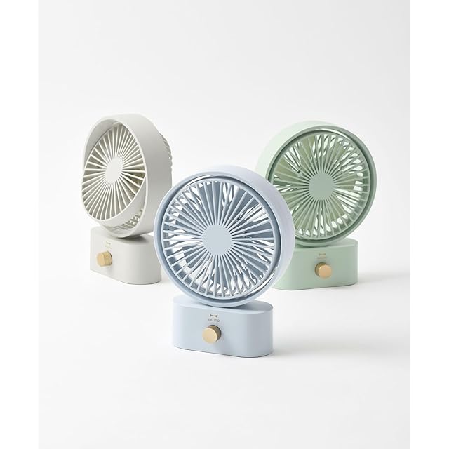 機能:入力:DC5V 1A Max.(USB充電式)、充電時間:約3.5時間(入力 5V1Aの場合)、連続使用時間:最小風量時約4時間 最大風量時約1.5時間、風量10段階切替、左右自動首振り機能(90°)、上下手動首振り機能(60°)