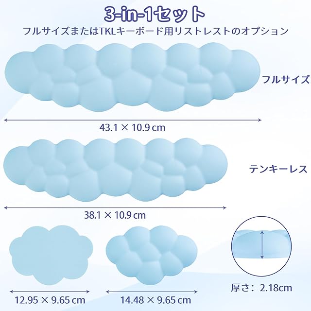 Sushret リストレスト 雲、PUレザーメモリーフォーム付きクラウド パームレストセット、手首のサポートとアームレストのためのかわいいリストレストキーボード、PC/ゲーム/ハンドクッション/コンピューター用のデスククラウド リストパッド (青) | TREND DESIGN 家電専門店