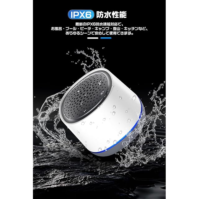 【IPX6防水防塵・手のひらサイズ】IPX6レベルの防水 スピーカーとして、お風呂、キッチンだけでなくアウトドアでも安心して使えます。全密閉構造しかも防水キャップ付きなので、お風呂スピーカーとしては最適です。丸形のデザインは見た目かわいいでおしゃれスピーカー、部屋の中でも綺麗な飾らきでもなれる。僅か75*61*72mm、手のひらに乗ってしまうくらいのコンパクトスピーカーサイズで、どこに持ち歩いても邪魔になりません。