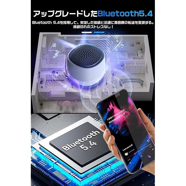 【Bluetooth5.4技術・自動ペアリング】このbluetooth スピーカーはBluetooth5.4チープを採用、旧世代Bluetooth5.0チップと比較すると省電力性や接続の安定性が格段に向上しました。動画視聴の際の映像と音声のズレも旧モデルから大幅に低減させ、スムーズなゲーミング&動画視聴体験が可能します。自動ペアリング機能を搭載し、初めて手動的に接続してから、次回は電源開けるだけで自動的に接続できます。