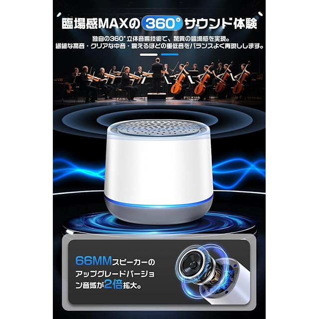【より良き音質をお届け・優秀な互換性】この高音質 ワイヤレススピーカーは360°全方位に音を拡散できるタイプ。直径約52mmのフルレンジスピーカーユニットを搭載しており、大音量ながら聴き取りやすい、臨場感のあふれる音質を実現し、深みのある低音と、刺激の少ない自然な中高域を部屋の隅々まで広げます。まるで生演奏のような立体感のある上質なサウンドを楽しめます。優れた交換性はiOS、Android、Windows、スマホ、タブレット、PC、Bluetooth機能あるのテレビ等に幅広く対応できます。