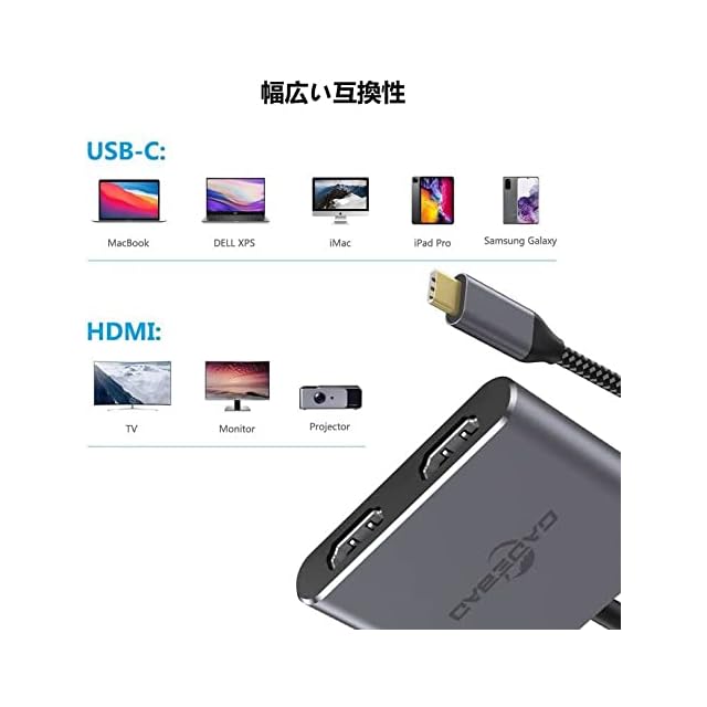 【USB C to 2 HDMI 変換アダプタ】:USB Type Cポートを備えたデバイスを4K HDMI出力の2つの外部モニターに接続します。外部ウルトラHD大画面で映画やゲームを家族と楽しむことができます。Windows OSはSSTとMSTモードの両方に対応しています。*本製品をご利用したいipadの客様はos16.2システムアップデートしてください。