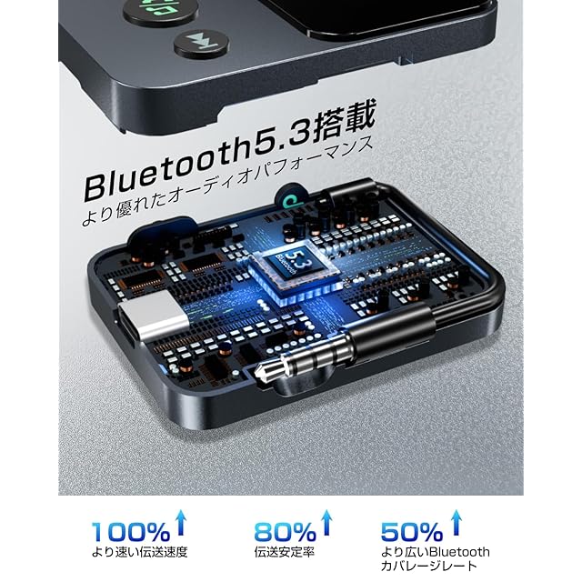 商品名:Ewin Bluetooth 5.3 トランスミッター & レシーバー 3.5mm 2台同時接続 17時間再生 受信機+送信機 2-in-1 ブルートゥース ハンズフリー通話 音楽再生 低遅延 LEDディスプレイ ナビ 一体型オーディオケーブル設計 テレビ 車 飛行機 など適用 充電しながら使用可