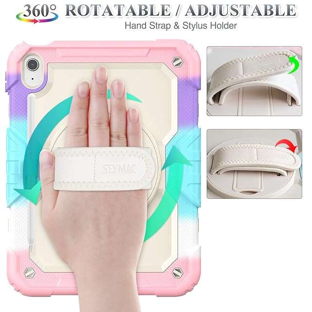 Product Descriptions</b><br><br><b>Features</b><br>1.Built-in kickstand will makes you using your case for ipad 11th 10th Generation easily, when you are watching video or playing games.<br>2.360 degrees rotating/Shoulder Strap are more convenient for you to carry your case for ipad 11th 10th Generation 2025 2022 / 11th gen/ 10th gen case for ipad 11/10.9 inch. <br>3.Colourful design can make your case for ipad 11th/10th Generation looks fashionable.<br><b>Shock prevention</b><br>Keeps case for ipad 11th/10th Generation away from Shock, prolonging the lifetime of case for ipad 11 / case for iPad 10.<br> <b>Dust prevention</b><br>Port plugs of the case protect dust from entering into case for ipad 11th/10th Generation's screen, making case for ipad stay clean and debris free.<br><b>Anti-scratch function</b><br>Guard against fingernails or other sharp objects scratching 11th 10th Gen case for ipad for maintaining case for ipad 11th 10th Generation's complete appearance.<br><br><b>Package Contents</b><br><br><b>1 x case for ipad 11th 10th Generation 11/10.9 inch 2025/2022</b> >>> 3 pieces combination installation, heavy duty full-body case for ipad 11/10, with portable shoulder strap, built-in kickstand, PC & silicone material.<br><b>1 x Portable Shoulder Straps</b> >>>The shoulder strap is easy to attach and remove, it can use together or <br>separate with your case for ipad 11th 10th Generation. With the strap can make your case for ipad using easily when you go to school, to work and on vacation without the need for a purse, bag or backpack. It can hang from anywhere for your better entertainment.<br> <b>1 x Clean Cloth</b> >>> Lint free, soft, reusable, easy to wash and quick drying.<br> <b>1 x User manual front card</b> >>> Our user manual front card can help you install it easily & clearly.<br><br><b></b><br>SEYMAC stock Team is a professional high-quality team servicing for customers when you're purchasing SEYMAC stock case for ipad 11th 10th generation.<br>