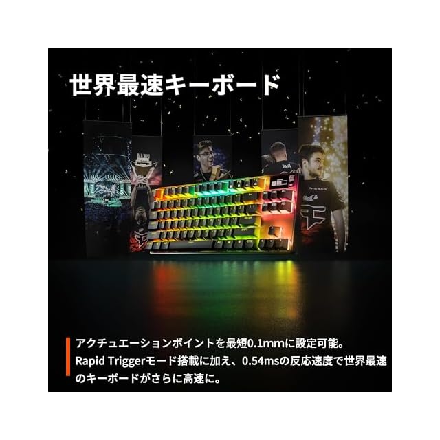 【世界最速キーボード】OmniPoint 2.0 Adjustable HyperMagnetic スイッチにより、アクチュエーションポイントを最短0.1mmに設定可能。Rapid Triggerモード搭載に加え、0.54msの反応速度で世界最速のキーボードがさらに高速に。