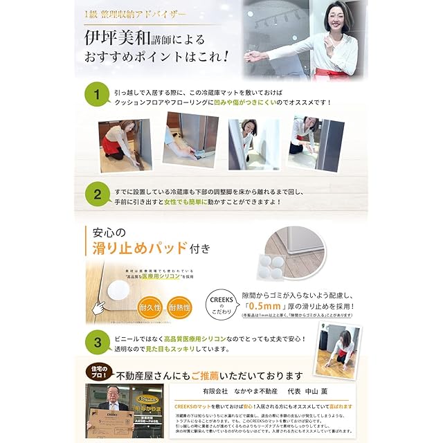 ✅【雑誌にも掲載されました!ランキングサイトやインスタ、SNSでも高く評価いただいています 】ではもちろん、R社Y社モールでも数多くのランキング1位、受賞を獲得!雑誌GOODAにてCREEKSマットが高く評価されております ✅【〜品質へのこだわり〜 クオリティーの違いを比べてください世界的にも認められた品質管理工場CREEKSマット】「UKAS」 、「NQA」、 「ISO9001」、「 RoHS」、「SGS」、「UL」 といった厳しい世界の品質基準に準拠した、品質の高いサプライヤーとの直接契約が実現! CREEKS冷蔵庫マットはクリーンベンチを備えた、高度な品質管理の下、マット換算で年間「800万枚」(8000トン)ものマットを生産している専用工場で作られています。その高い品質は世界でも認められ イタリア、ドイツなどのヨーロッパ諸国や、タイ、韓国、中国などに供給され、高く評価されています