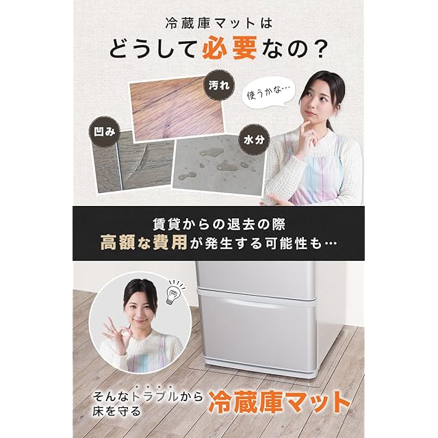 ✅【防弾シールドに使用される程の強度】"ガラスの250倍"の強度を誇り、ハンマーなどで強打しても割れません!地震が起きても破損・飛散することがなく、 冷蔵庫 を置いた時にできる 傷 や 凹み から床を守ります!従来品より厚みが増し、さらに床への キズ防止 効果がアップ!重さわずか997gで(Mサイズ)女性でも簡単に設置できます ✅【ガラスと同等の透明性】可視光線透過率80-90%と、ガラス同等の 透明 性を実現!どんな床にも馴染み、お部屋のデザインを損ないません。