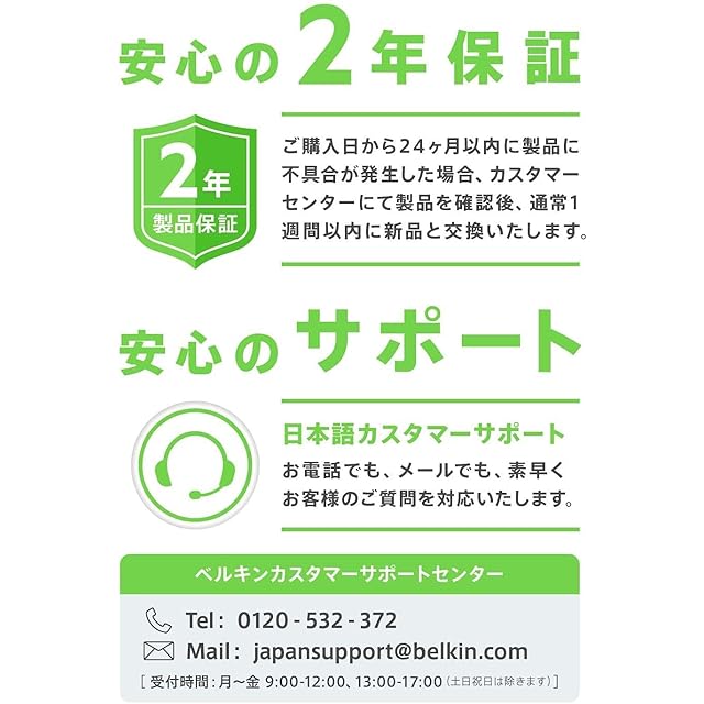 【安心サポート】期間 2年。日本語サポートセンター対応で、ユーザーの安心をサポート。