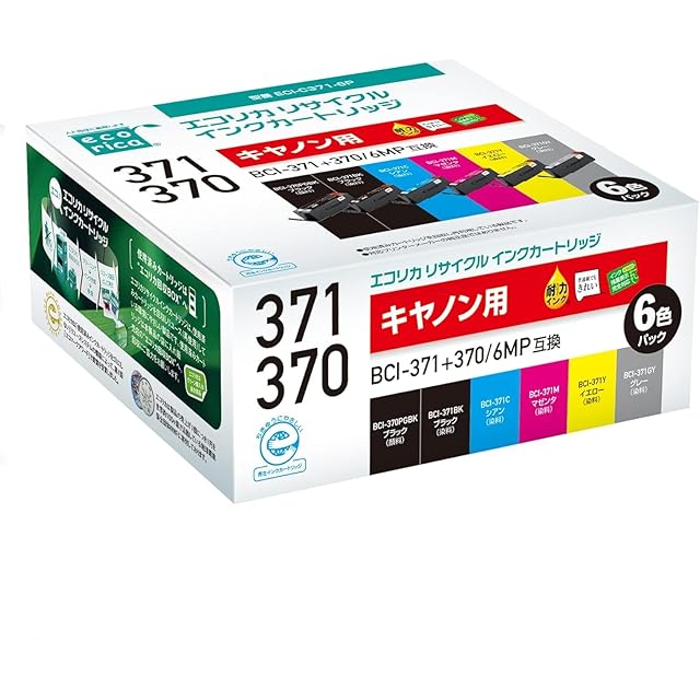 商品名:エコリカ キヤノン BCI-371+370/5MP対応リサイクルインク 6色パック EC-C371+370/6A 残量表示対応 【エコリカ封筒パッケージ】