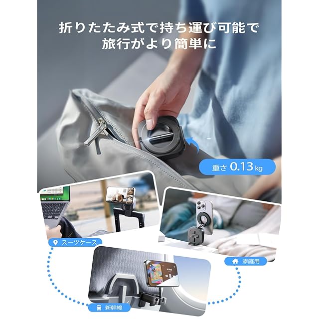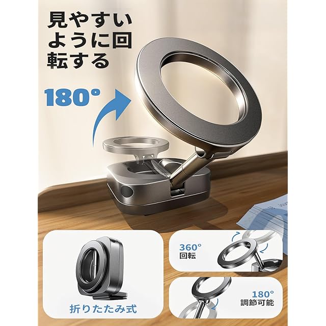 商品名:LISEN magsafe スタンド スマホスタンド 飛行機 旅行 便利グッズ ト スマホホルダー マグネット360°回転可能 iphone スタンド 飛行機 快適グッズ mag safe 新幹線 携帯ホルダースマホスタンド 卓上 旅行 片手操作 iPhone16 15 14 13 12 など全機種対応