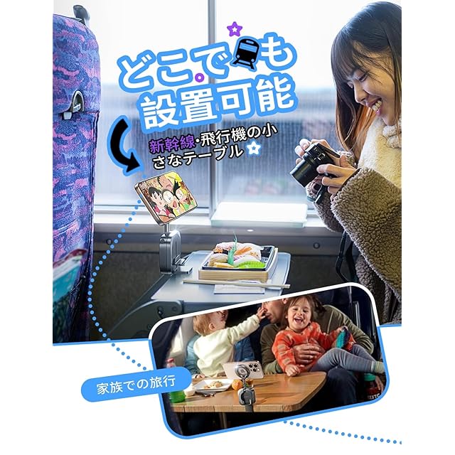 【片手操作ミニボディ】便利グッズ 海外旅行 スマホ 飛行機 スタンド コンパクト、折りたたみ式でコンパクトなデザインなので、ポケット、バックパック、かばん、スーツケースなどに場所を取らずに簡単に入れることができます。 どこへでも持ち運んで、生活を楽しんでください。