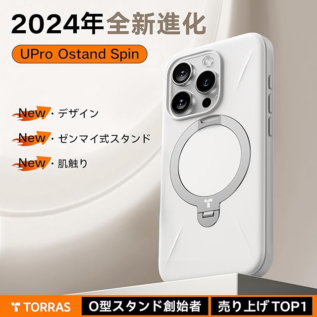 【新型ゼンマイ式 ・高級なデザイン】TORRAS iPhone 16 Pro Max 用 ケースゼンマイ式スタンド マグネット搭載 縦横両対応リング 米軍耐衝撃 6.9インチ「Ostand Spin Fusion」ヨーグルト・ホワイト | TREND DESIGN 家電専門店