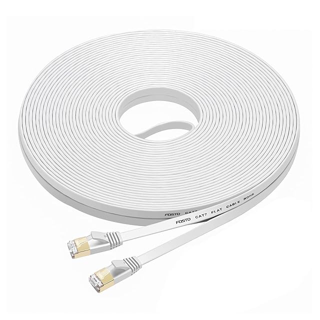 FOSTO Cat7 LANケーブル 35m カテゴリー7 イーサネットケーブル ウルトラフラットケーブル 高速 STP 金メッ 爪折れ防止 RJ45コネクタ付き ギガビット 10Gbps/600MHz 業務用 屋外用 for シールド モデム ルータ PS3 PS4 Xbox (ホワイト)