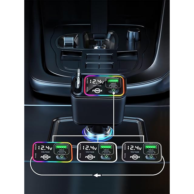 <br>4-in-1カーチャージャーで、最大4台のデバイスを同時に充電できる便利さを体験してください。この多用途カーチャージャーソケットは、スマートフォン、タブレット、ワイヤレスヘッドホン、スマートウォッチに一度に給電できるよう装備されています。12V入力のUSB-Cケーブルは、5V~12Vの出力電流で最大36Wの急速充電が可能です。トラックのシガーライターソケットによくある24V入力に接続すると、USB-Cケーブルは最大65W、Lightningケーブルは27W、USB-AとUSB-C2ポートはそれぞれ15Wの電力を供給できます。車内に散らばる複数の充電器に別れを告げ、充電器1台で充電の必要性を簡素化しましょう。 <br>最大76cmまで延長可能なUSB-CケーブルとLightningケーブルで、スマートフォンやタブレットを効率的に充電できます。巻き取り式のデザインは車内を整理整頓し、ケーブルが絡まる煩わしさを解消します。 <br>このユニバーサル車載充電器は、PD3.0、QC4.0、PPS、Appleなどさまざまな急速充電プロトコルに対応しており、iPhone、Androidスマートフォン、タブレットなどとの互換性をします。デバイスの充電要件に応じて出力を調整し、効率的な電力伝送を実現します。 <br>カーチャージャーのアンビエントライト機能であなたの車にスタイリッシュなタッチを追加します。充電器にプラグを差し込むと、アンビエントライトが点灯し、現在のカーバッテリーの電圧が正常範囲内にあることを表示し、充電器が正常に動作していることを示します。クリックするだけで、カラフルなアンビエントライトとホワイトライトを切り替えることができます。 <br>シガーソケット usb シガーソケット 車 充電器 車載充電器 シガーソケット usb-c 車 充電器 シガーソケット シガーソケット 急速充電 カーチャージャー シガーソケット 充電器 巻き取り式充電ケーブル 車 車 usb anker カーチャージャー 車 スマホ 充電 車 充電器 タイc シガーソケット タイプc 車 充電 巻き取り式充電ケーブル 車充電器 充電器 車 車 充電器 iphone シガーソケットusb