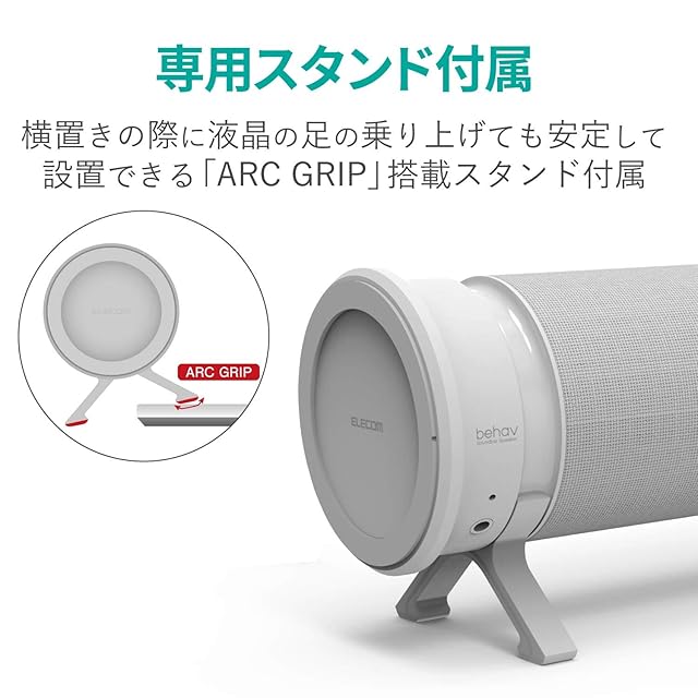 横置き時はスタンドの上で本体を回転させることで音の出る方向を調整でき、指向性を調整することができます。