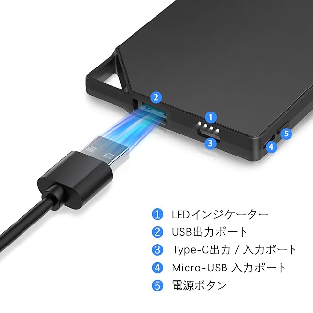 入出力兼用Type-Cポート:入出力兼用Type-Cポートを搭載しております。携帯充電器がMicro-USBとType-C2つの入力ポートで、バッテリー本体への充電が同時入力可能です。充電時間は3時間以内に短縮されます。