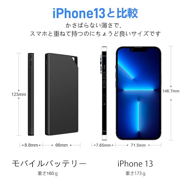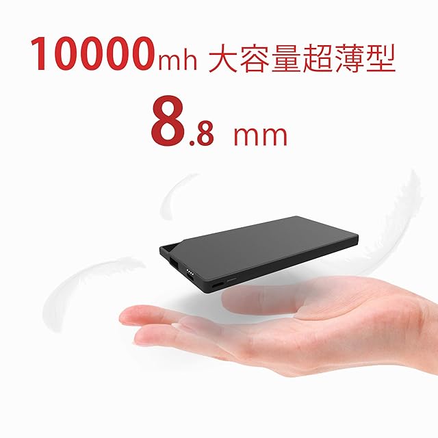 1000mAh大容量、薄型軽量:10000mAh大容量を持っているのに、軽量、薄型、小型と三拍子揃ったモバイルバッテリーです。モバイルバッテリーは片手に収まるコンパクトサイズでカバン、ポケットに入れてもかさばりません。