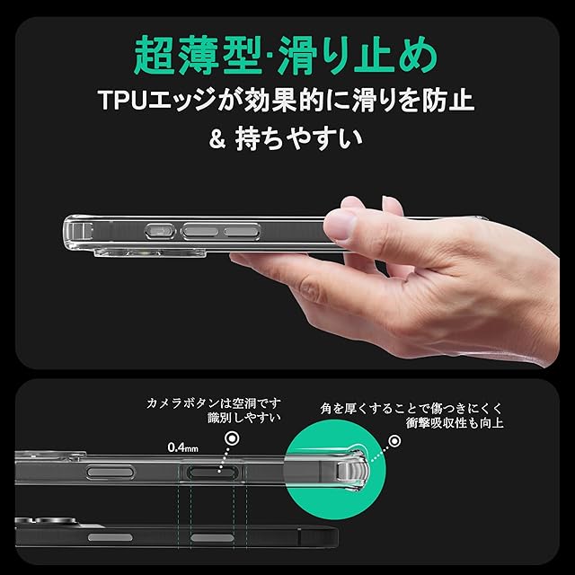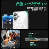IPhone16 のための高品質ハードケースです。MagSafeマグネットリングが装備されており、MagSafeアクセサリーとの併用が可能です。Qi対応の無線充電にも対応しています。画面やカメラの縁が高く設計されているため、しっかりと保護されます。米国軍規格に準拠した落下保護機能を備えており、衝撃吸収性に優れたPCとシリコン素材を採用しています。背面には傷防止加工が施されており、長期間の使用でも損傷しにくくなっています。高透明度のクリアケースなので、 iPhone 16 の美しいデザインを損なうことなく楽しめます。薄型で滑り止め加工が施されているため、手に馴染みやすくなっています。人間工学に基づいた設計で、手にフィットする快適なグリップ感を実現しています。
