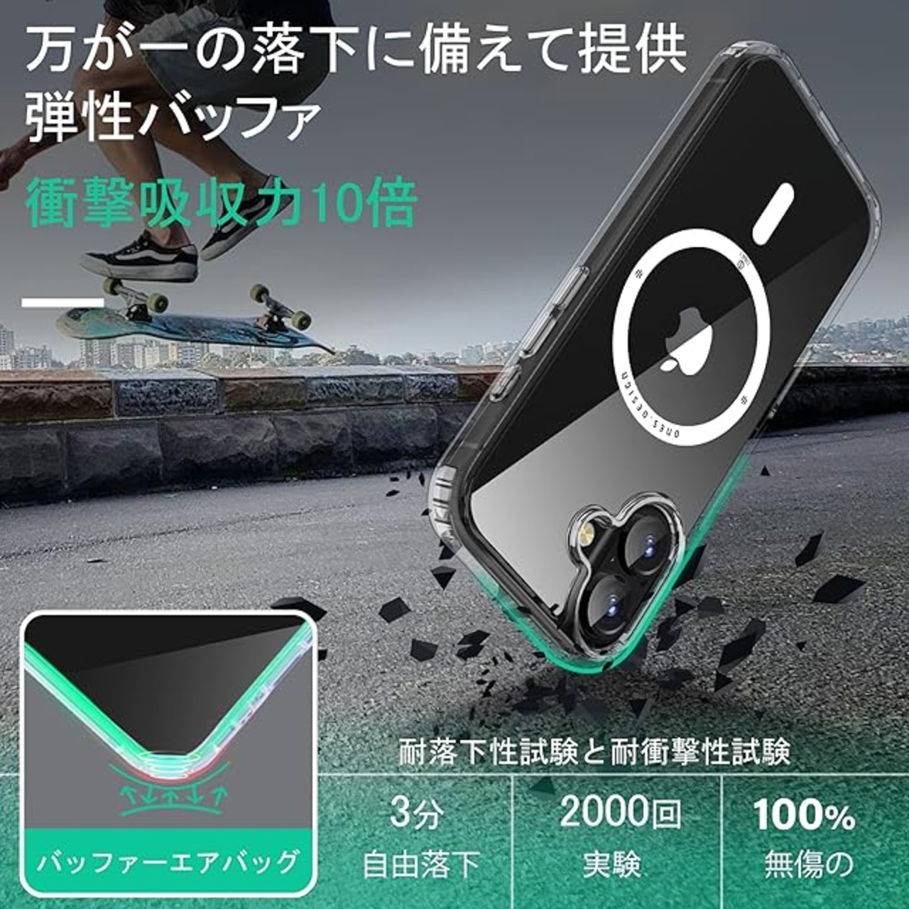 商品名:ONES HD超透明 iPhone16 用 超強磁性MagSafe対応 ハードケース 米軍MIL規格 エアバッグ 超耐衝撃 レンズ保護 画面保護 「 高靭性強化PC保護板 ✚ 高弾性衝撃吸収·シリコンバンパー 」 Qiワイヤレス充電 傷防止 滑り止め 超軽量 持ちやすい 黄ばみ防止 クリスタル クリア マグネット カバー