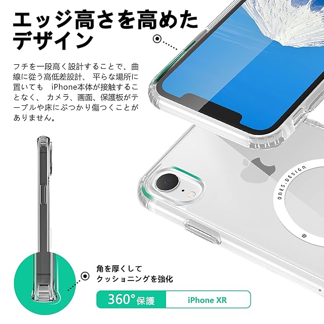 商品名:ONES HD超透明 iPhoneXR 超強磁性MagSafe対応 ハードケース 米軍MIL規格 エアバッグ 超耐衝撃 レンズ保護 画面保護 「 高靭性強化PC保護板 ✚ 高弾性衝撃吸収·シリコンバンパー 」 Qiワイヤレス充電 傷防止 滑り止め 超軽量 持ちやすい 黄ばみ防止 クリスタル クリア マグネット カバー