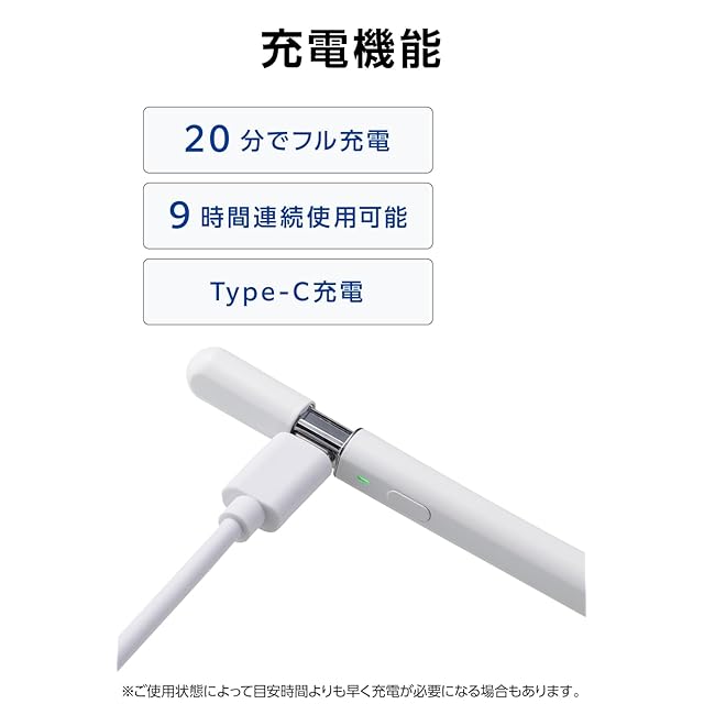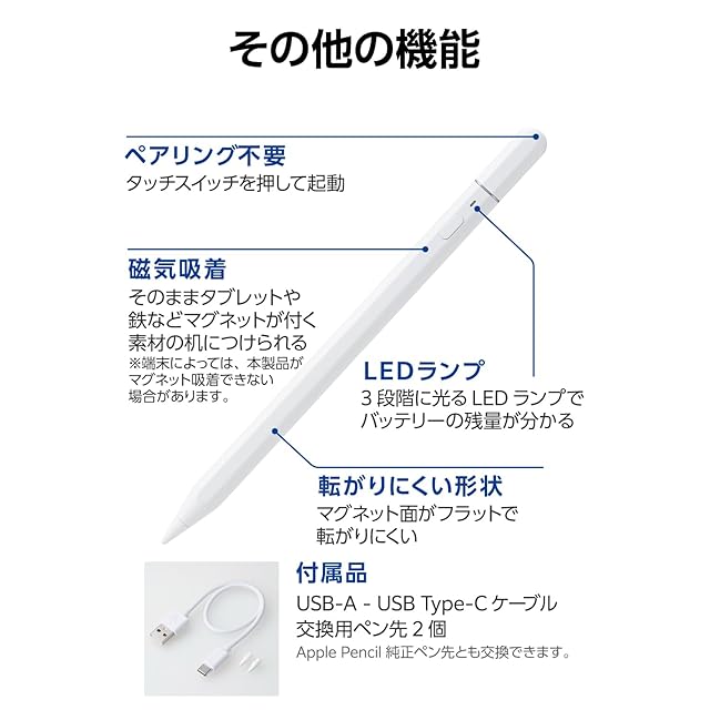商品名:エレコム タッチペン 【iPad7/8/9/10、iPad Pro 11/12.9/13インチ、Air3/4/5/11・13インチ、mini5/6に対応】 iPad専用 ペンシル 急速充電 パームリジェクション 傾き検知 コネクタカバー 20分でフル充電 P-TPACSTAP08WWH