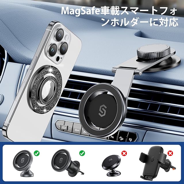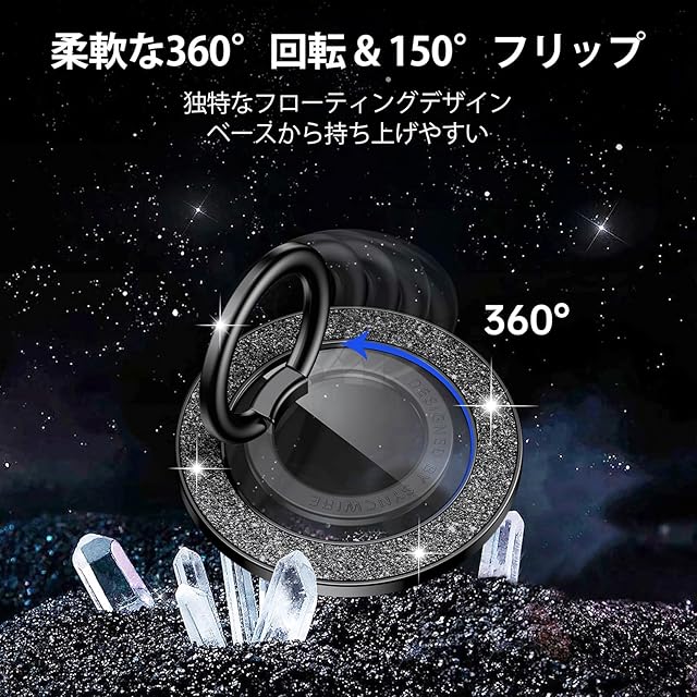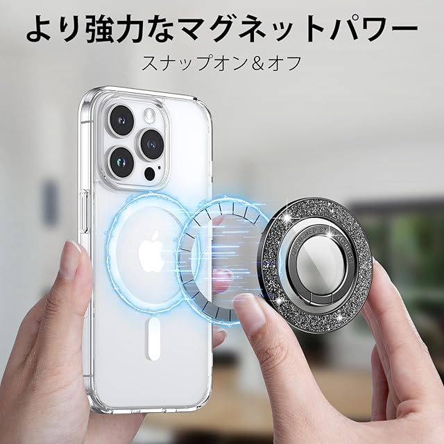 商品名:Syncwire MagSafe対応マグネット式スマートフォングリップ、マグネット式スマートフォンリングホルダー、回転式スタンド機能付き携帯電話スタンド 取り外し可能なMagSafeアクセサリー iPhone 15 Pro Max 14 13 12、Android用 -黒く輝くダイヤモンド