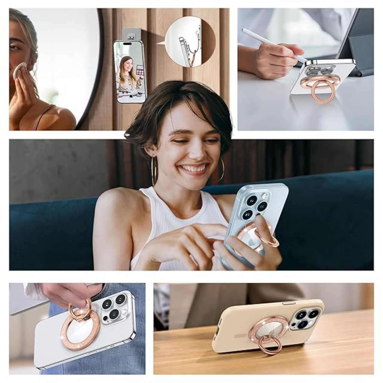 SyncwireのMagSafe用磁気式電話グリップ、磁気スパークル電話リングホルダー、回転可能なスタンド式携帯電話スタンド、iPhone 15 Pro Max 14 13 12、Android用取り外し可能なMagSafeアクセサリー- ローズゴールド | TREND DESIGN 家電専門店