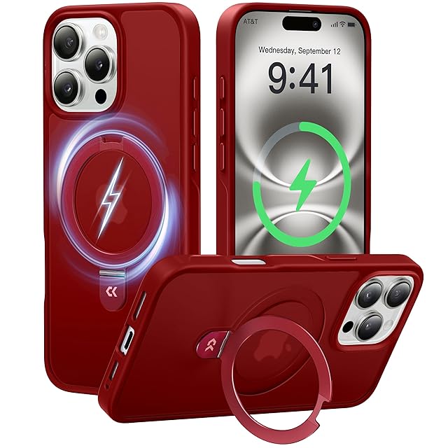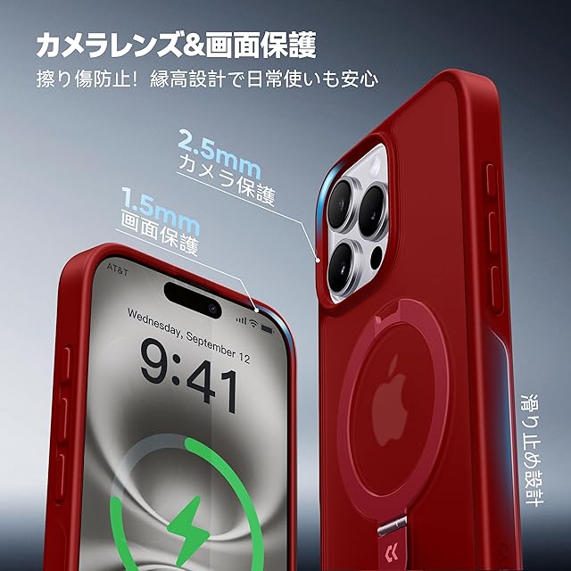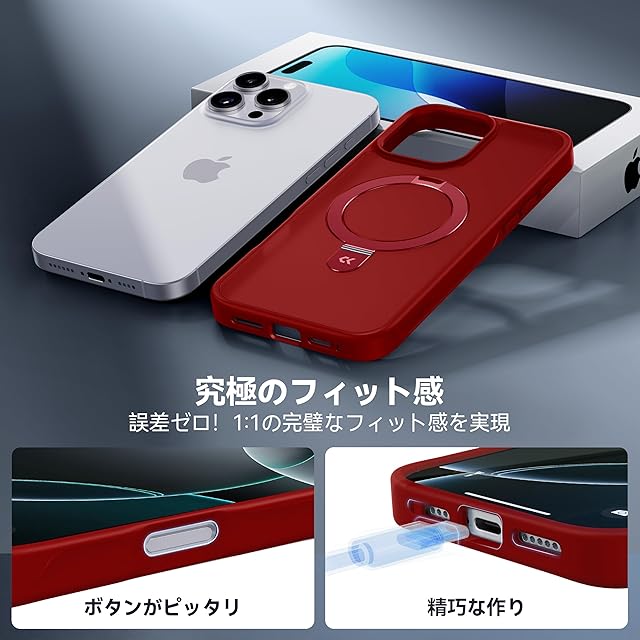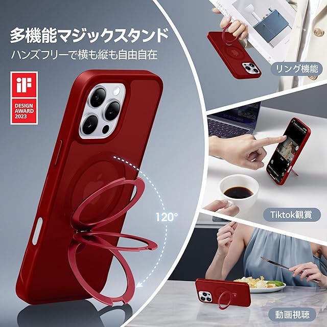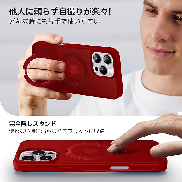 【8年間の技術結晶!4in1超万能モデル】CASEKOO iPhone 16 Pro Max 用 ケース 米軍MIL規格 横縦両立 指紋防止 マット仕上げ 最大25W急速充電対応 MagSafe対応 黄変防止 半透明 ストラップホール付き ワイヤレス充電対応 いphone16promax 用 ケース 6.9インチ「MagicStand」(レッド) | TREND DESIGN 家電専門店