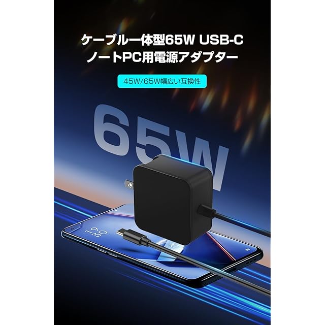 商品名:ノートパソコン 充電器 type-c PD 65w Macbook pro/レノボ/Lenovo交換用充電器【GaN+(窒化ガリウム)採用/PD 65w/45w急速/1.5mType-Cケーブル一体型/折畳式プラグ/PSE】acアダプター Mac電源アダプタ 軽量 持ち運び Switch/Mac Book Pro 各種USB-C機器対応 黒
