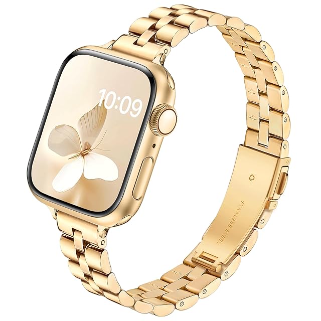 [SIBOYL] 超細人気い対応アップルウォッチ バンド 42mm(Series 10) 41mm 40mm 38mm、エレガントなシンプルさ、コンパチブルおしゃれあっふウォッチバンド、コンパチブルApple Watch ベルトステンレス、対応のアップルウォッチ ベルトレディース、対応 Apple Watch 10 Se 9 8 7 6 5 4 3 2 1-ゴールデン | TREND DESIGN 家電専門店