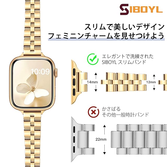商品名:[SIBOYL] 超細人気い対応アップルウォッチ バンド 42mm(Series 10) 41mm 40mm 38mm、エレガントなシンプルさ、コンパチブルおしゃれあっふウォッチバンド、コンパチブルApple Watch ベルトステンレス、対応のアップルウォッチ ベルトレディース、対応 Apple Watch 10 Se 9 8 7 6 5 4 3 2 1-ゴールデン