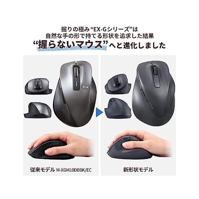 医師との共同開発により究極の握り心地を実現した5ボタンマウス“EX-G"。