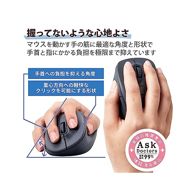 整形外科医との共同開発により自然な手の形のまま使える、握らないマウス“EX-G"シリーズ。手首と指を動かす筋に着目し、マウスを動かす際にかかる身体の負担を極限まで抑えたBluetooth(R)5ボタンマウスです。