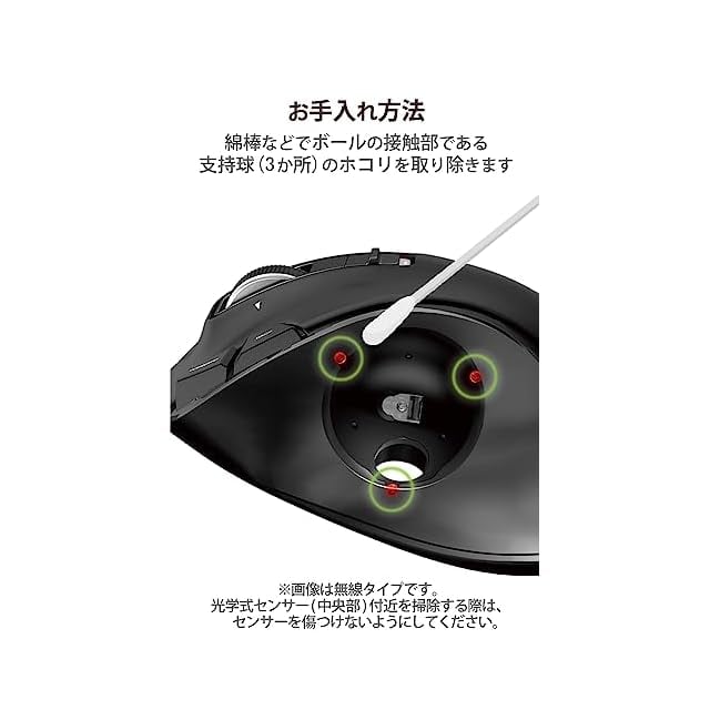 直径2.5mmの大型人工ルビーを支持球に採用することで、操球感が向上しています。また支持球の大径化により、支持球が手あか等のゴミに埋もれにくくなり、メンテナンス頻度が低減しています。