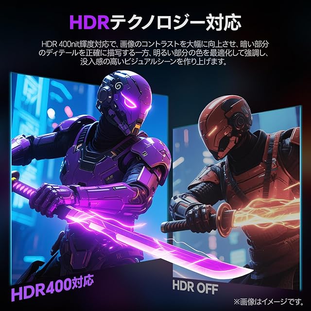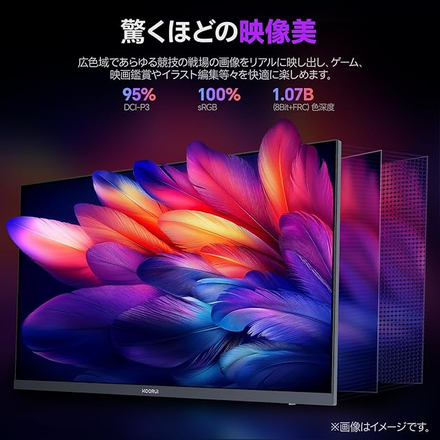 【Fast IPSパネル&広色域&驚くほどの映像美】178°広視野角の非光沢Fast IPSパネルを採用、どうな角度から見ても画像が鮮やかで自然に映し出します。DCI-P3 95%、sRGB 100%の広色域と 1.07B (8Bit+FRC) 以上の表示色で、忠実な色を再現でき、350nitの高輝度とHDR400機能加えて、明暗やディテールをすっきり映し出して、リアルで豊かな世界を没入します。
