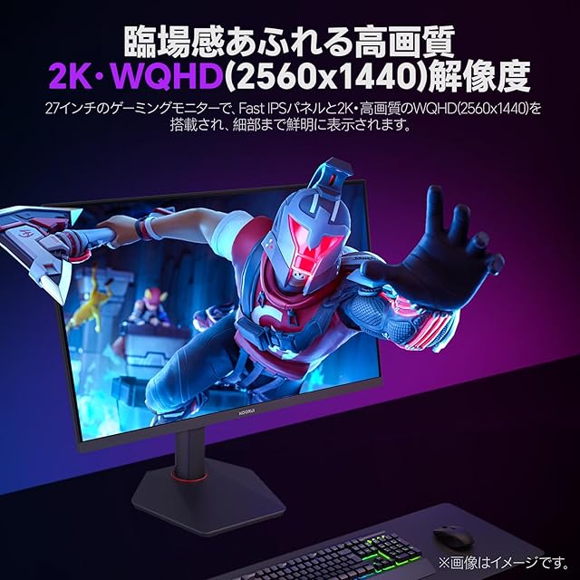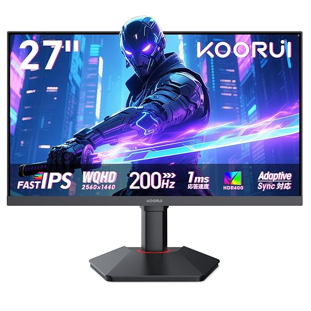 商品名:KOORUI ゲーミングモニター 27インチ WQHD(2560x1440) 200Hz 1ms(OD) Fast IPSパネル 350nit高輝度 DCI-P3 95%/sRGB 100%/ HDR400/Adaptive Sync/HDMIx2/DP VESAマウント対応 縦横回転 PC モニター G2722P