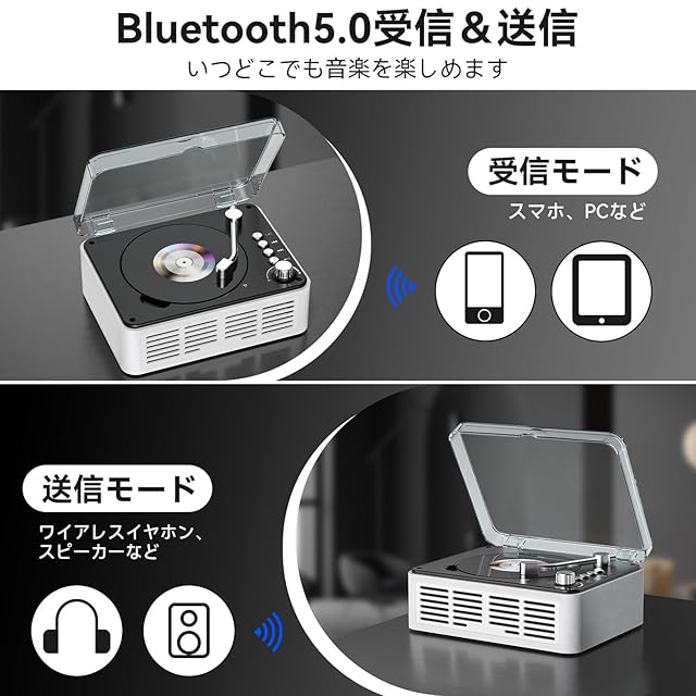 「Bluetoothv5.0を搭載し、受信も発信も対応」多くのCDプレーヤーより、本製品がBluetooth5.0技術を採用して受信も送信もでき、Bluetooth搭載のスマホ、PCなどデバイス以外、Bluetoothイヤホン、Bluetoothスピーカーにも接続可能で、いつどこでも楽しめます。