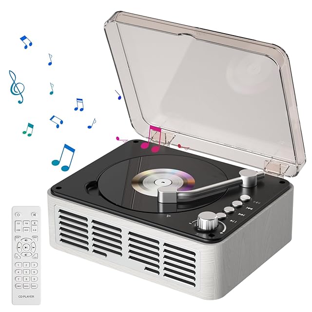 Gueray CDプレーヤー Bluetooth5.0 受信&送信 レトロ ステレオスピーカー内蔵 CDプレイヤー CDラジカセ 卓上置き 一機多用 USB/FM/AUX A-Bリピート ポータブル リモコン付き 睡眠モード 語学学習/音楽鑑賞/子供教育/ストレス解消 防塵カバー付き 日本語取扱説明書付き ホワイト | TREND DESIGN 家電専門店