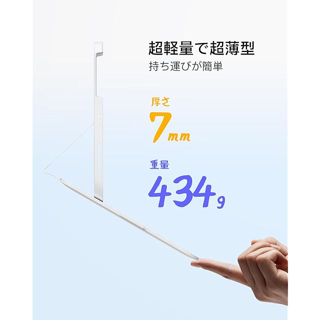 超薄型で超軽量:キーボードの厚さは0.7cmで、カバーで覆われているときが1.5cmです。全体の重量は434gで、類似製品の90%より軽量。より便利に持ち歩くための軽量設計です