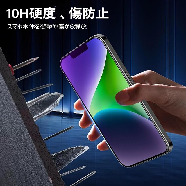 【10H硬度・高品質素材】MINIKAの いPhone 14 Plus フィルム、10H硬度ガラスを採用し、ハードコーティング技術により外部からの衝撃を吸収し、画面へのダメージを可能な限り抑えます、スクラッチ防止。【製品の特徴】 全面保護/気泡なし/耐衝撃/剥がれない/綺麗/飛散防止。