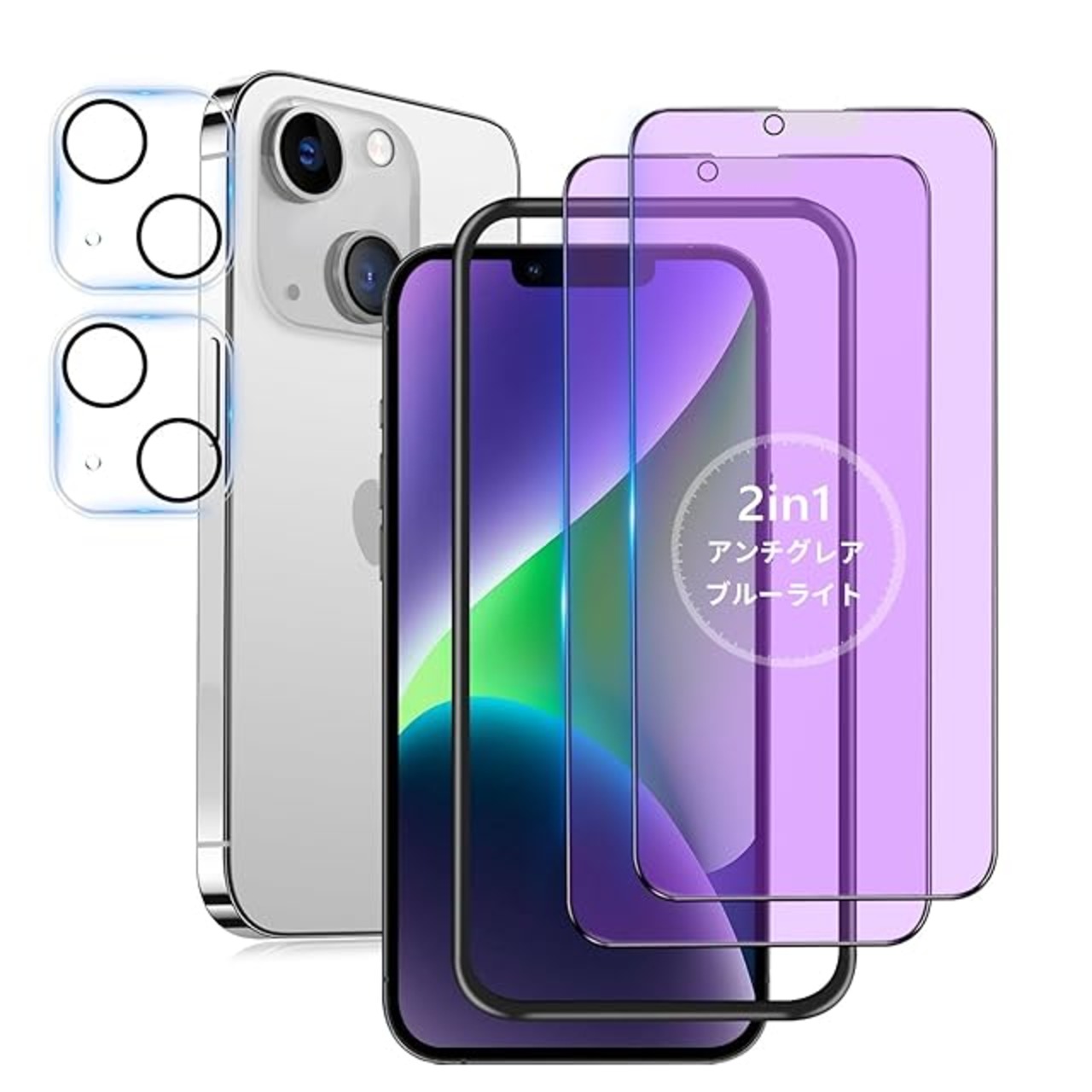 商品名:【ブルーライトカット + アンチグレア/2枚セット】 iPhone 14 Plus ガラスフィルム ブルーライト さらさら いPhone14Plus ブルーライトカット サラサラ アイフォン14プラス 保護フィルム 指紋防止 14Plus 用 画面フィルム 反射防止 iPhone14Plus カメラフィルム 付き